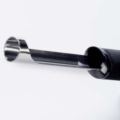 Le pomme est l'un des fruits préférés des français pendant l'hiver : compote, tarte ou simplement en quartiers, elle se déguste avec plaisir sous différentes formes. Avec le vide-pomme, retirez le trognon des fruits (pomme, poire…) en un geste simple et rapide. Enfoncez le vide-pomme dans le fruit en tournant ; retirez le cœur. Sa lame dentelée en acier inoxydable et finement acérée permet d'insérer le vide-pomme franchement sans abimer le fruit. Son manche ergonomique est antidérapant.