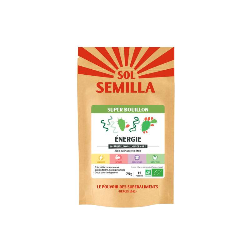Deux superaliments Sol Semilla, la spiruline et le nopal, aux multiples bienfaits, sont accompagnés de lupin (source de protéines facilement assimilable) dans cette création maison alliant plaisir, nutrition, et facilité d'usage.